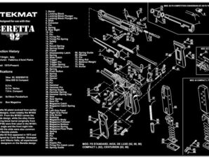 The perfect cleaning and repair mat for your Beretta 92 or M9. Have fun and learn while you work on your favorite handgun. The soft top protects your gun from scratches while the neoprene rubber backing protects your work surface from chemicals while keeping everything in place.